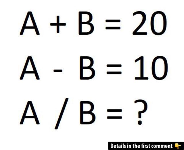 Get ready to test your math skills with this challenging equation! Can you solve for A/B with just a few simple steps? This puzzle is designed to challenge your logical thinking and problem-solving abilities. If you think you have the answer, drop it in the comments and let’s see how fast you can solve it. Don’t forget to share how you reached your solution! Challenge yourself and try more puzzles to continue boosting your cognitive skills.